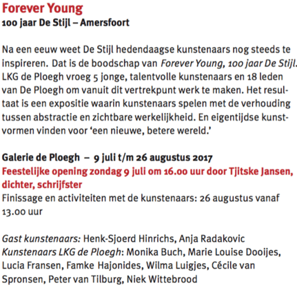 Deelnemende kunstenaars van de Ploegh Nieuw Amersfoorts Palet o.a. Barbara Bläsing, Monika Buch, Frank Dekkers, Eddy Gheress, Annemieke Harkema, Jeroen Hermkens, Monica de Jong, Olivier Julia, Maarten van der Laag, Wilma Luigjes, Marcel Schellekens, Rob Schreefel, Maartje Strik, Linda Verkaaik, Kees Verwey, Marijke Vijfhuizen.